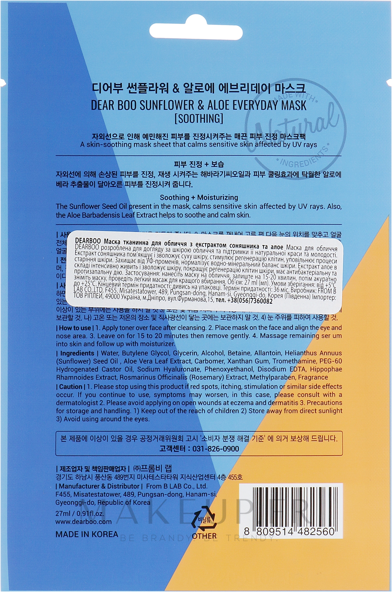 Caractéristiques du masque Dearboo Everyday Tournesol & Aloe :
