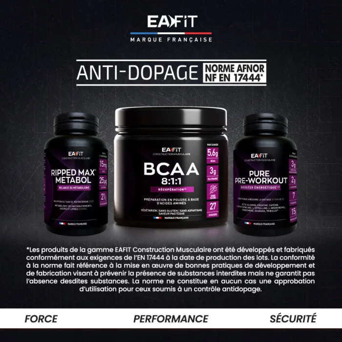 Depuis 1991, EAFIT est une marque française de référence en nutrition sportive, avec des produits formulés en laboratoire et testés par des athlètes de haut niveau. Nous nous engageons à fournir des compléments de haute qualité pour soutenir les performances physiques tout en respectant l’organisme.