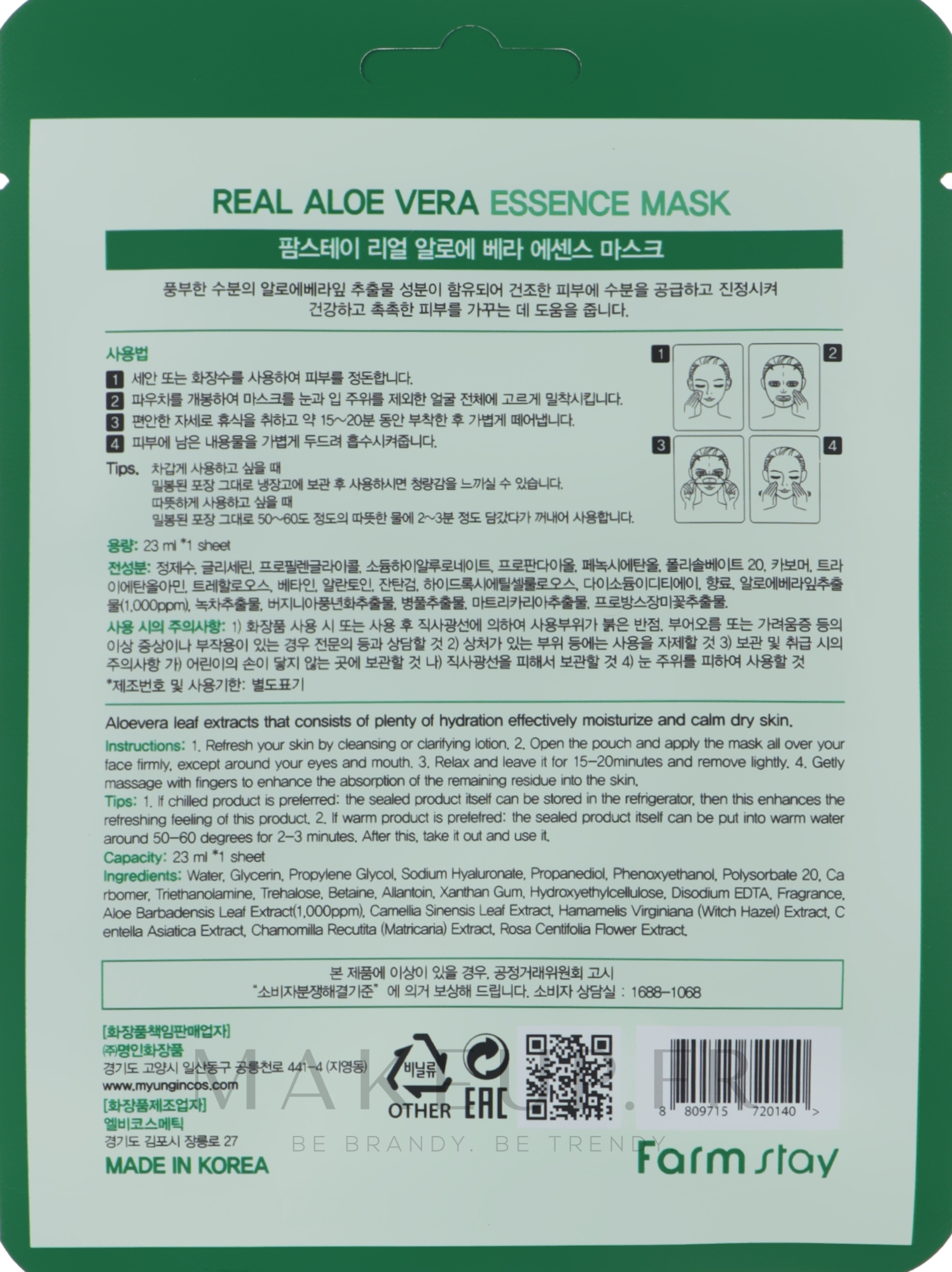 Caractéristiques principales du Masque à l’Essence de Vraie Aloe Vera de FarmStay :