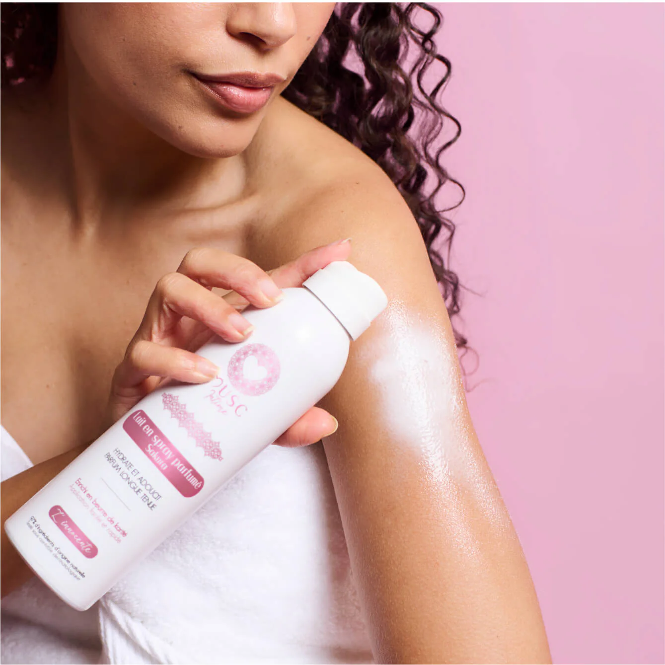 Formulé en France et testé sous contrôle dermatologique, le Lait Spray hydrate la peau pendant 24H grâce au beurre de karité et à l’aloe vera. Sa formule légère, sans nanoparticules ni ingrédients controversés, laisse la peau douce et intensément parfumée toute la journée.