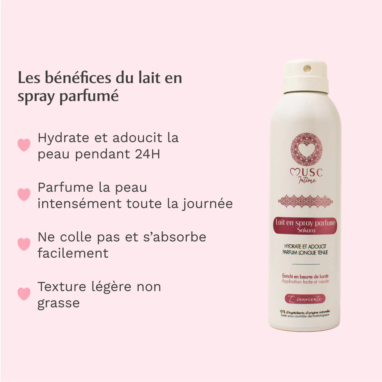 AccueilShopSOIN DU CORPSlait de corpsMUSC INTIME Lait en Spray Parfumé Sakura – L’Innocente 200ml
