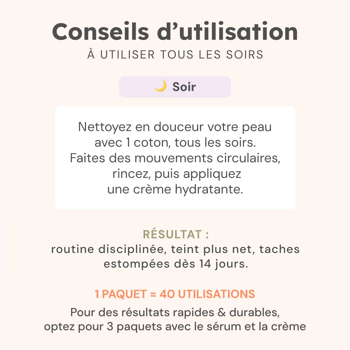 Vous pouvez l’utiliser tous les soirs ou matin et soir pour des résultats optimaux.